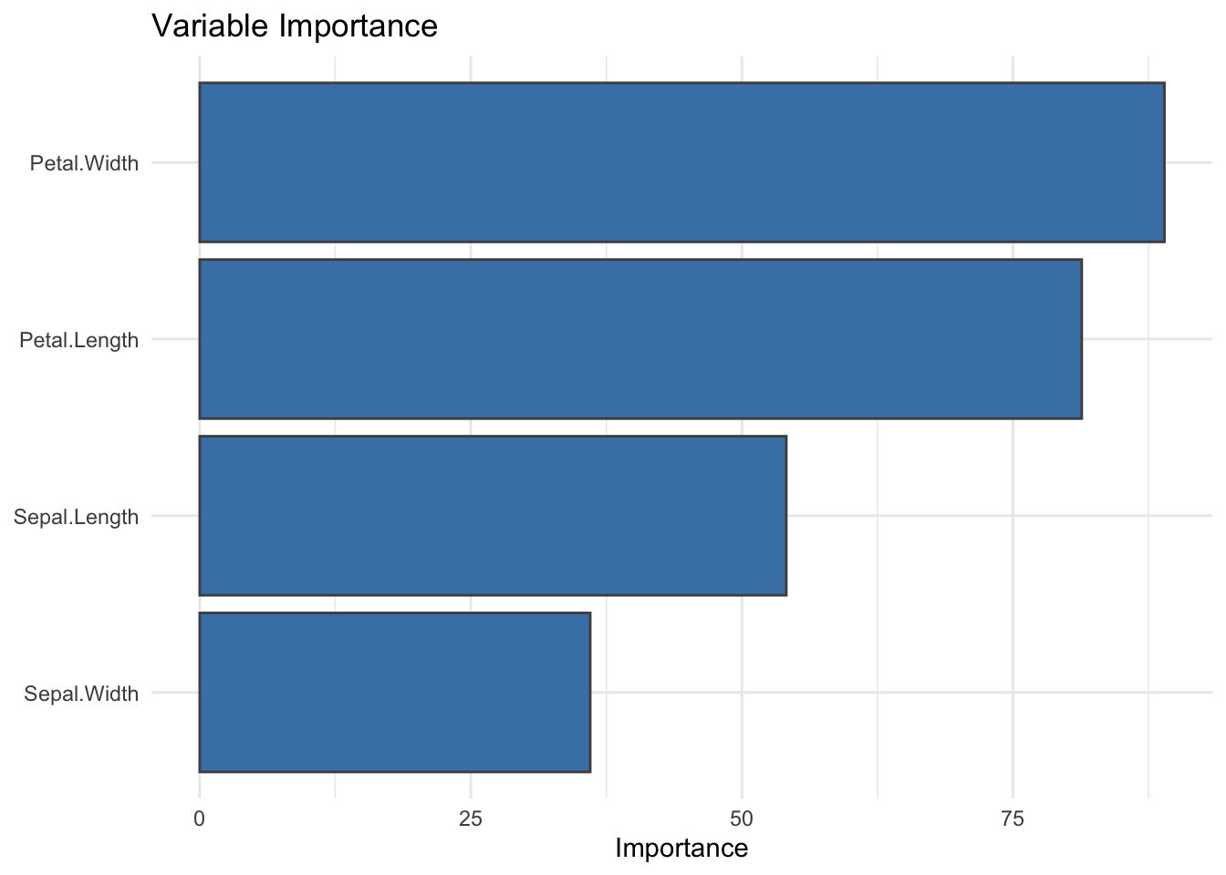 Trees provide a built-in measure of variable importance, based on how much each variable reduces impurity across splits. This is a useful complement to the tree structure itself.
