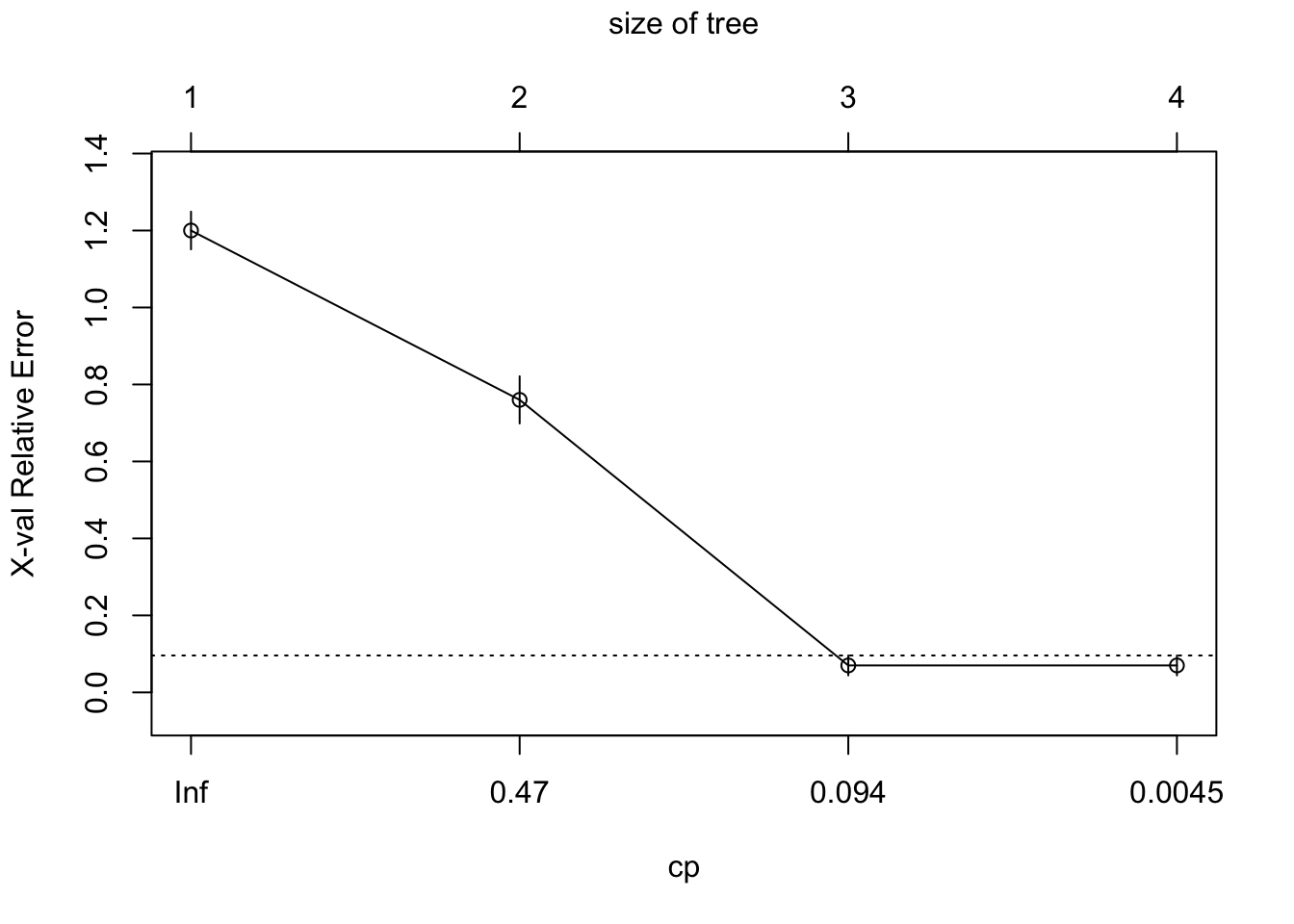 As in the regression case, the console output is not the most readable summary. We move quickly to pruning diagnostics and visual representations.