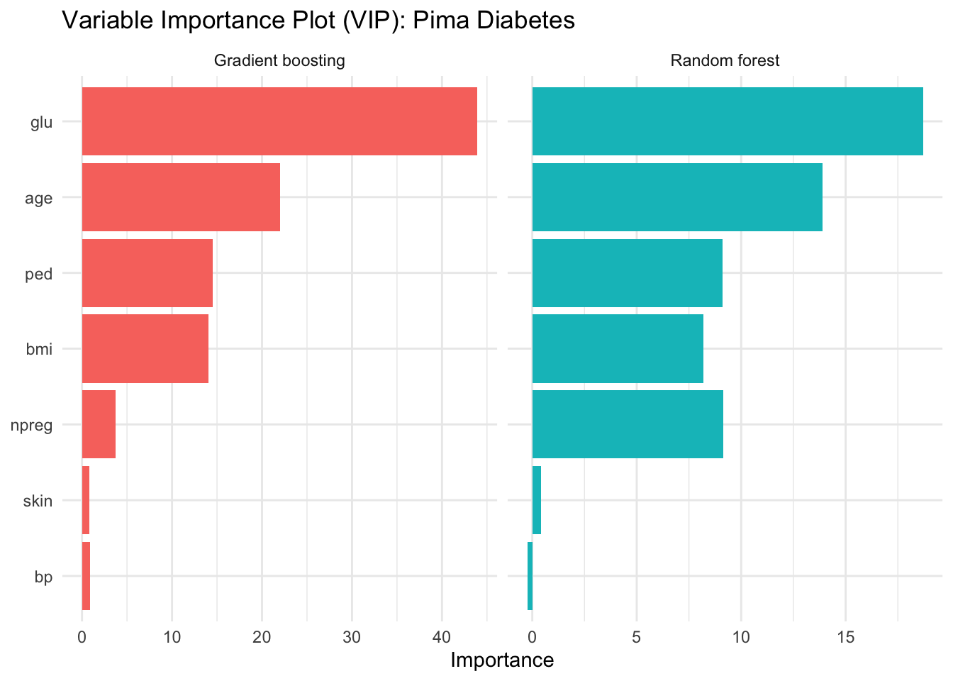 pima_imp_df <- bind_rows(pima_rf_imp_df, pima_gbm_imp_df)